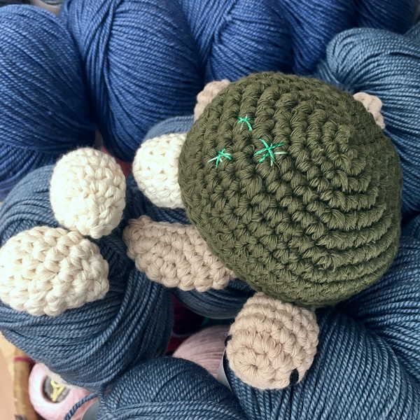 Como es tradición, hemos creado el patrón de un amigurumi con motivo del Día mundial de tejer en público. En esta ocasión, se trata de una Tortuga boba que incluso ha puesto huevos. Nos hemos inspirado en las tortugas que anidaron en la playa de la Mar Bella de Barcelona el verano pasado. Desovaron muchos huevitos y queremos rendirles homenaje. Estas tortugas se llamarán bobas pero soy muy inteligentes, aunque al llegar a tierra firme puedan sentirse algo desubicadas y aturdidas. Nuestro propósito es, además de homenajearlas, dar a conocer su esfuerzo tejiendo camadas de tortugas a todo ganchillo. ¿Te animas?