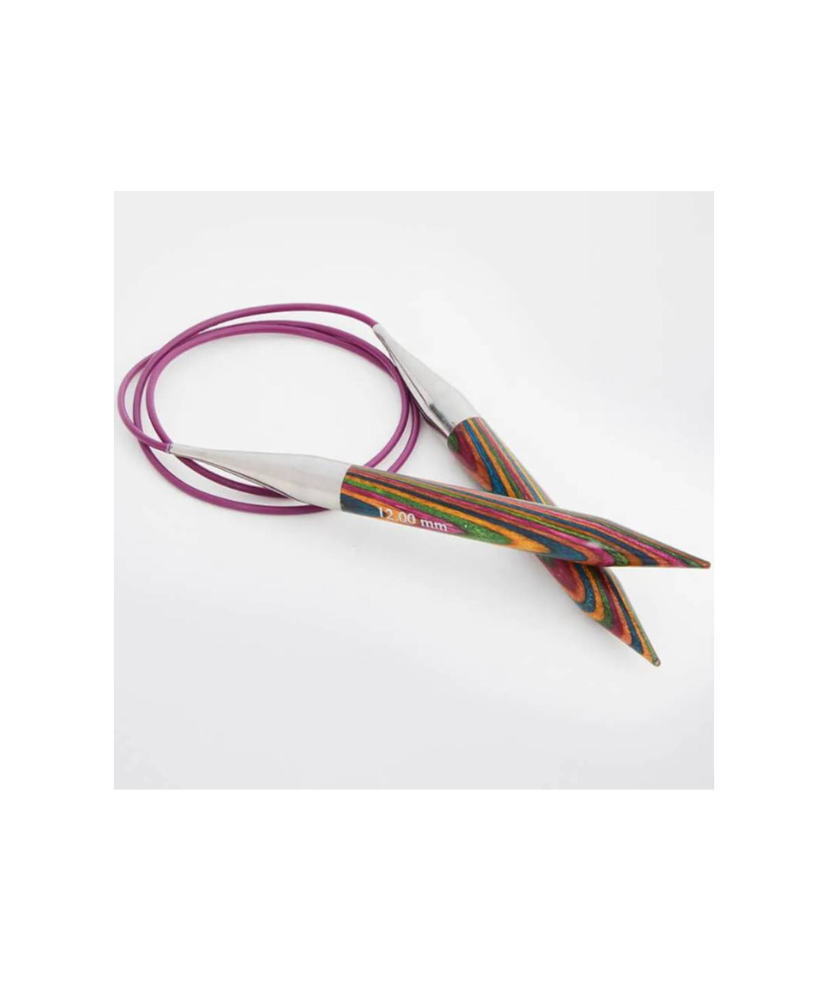 Agujas circulares fijas de madera, diseñadas para trabajar en punto circular con comodidad y precisión. De la colección Symfonie de KnitPro.