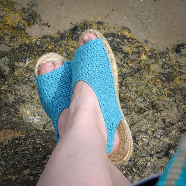 Descárgate este patrón gratis para tejer sandalias a ganchillo.