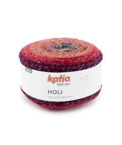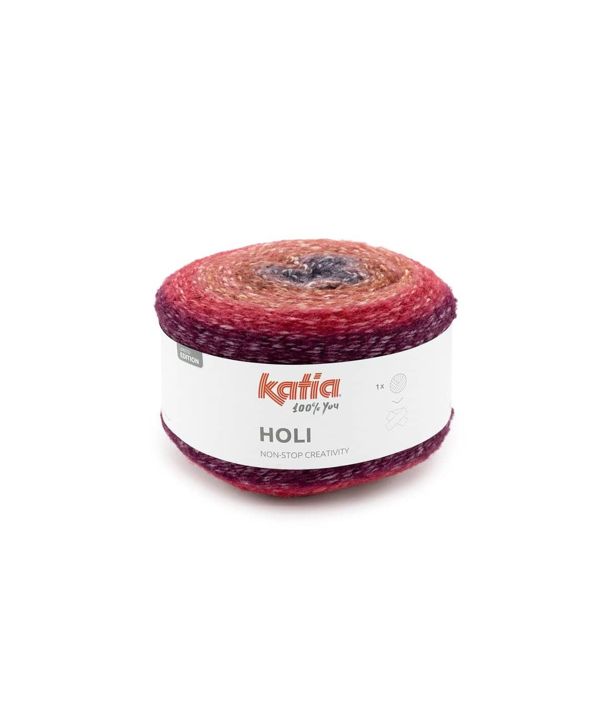 Déjate sorprender por Katia Holi, un hilo único en formato cake de 200 g, con un degradado perfecto que da vida a proyectos llenos de color. Su innovadora mezcla de lana, acrílico y poliamida ofrece una combinación ideal de consistencia, suavidad y un sutil efecto peluche, que marca tendencia esta temporada.