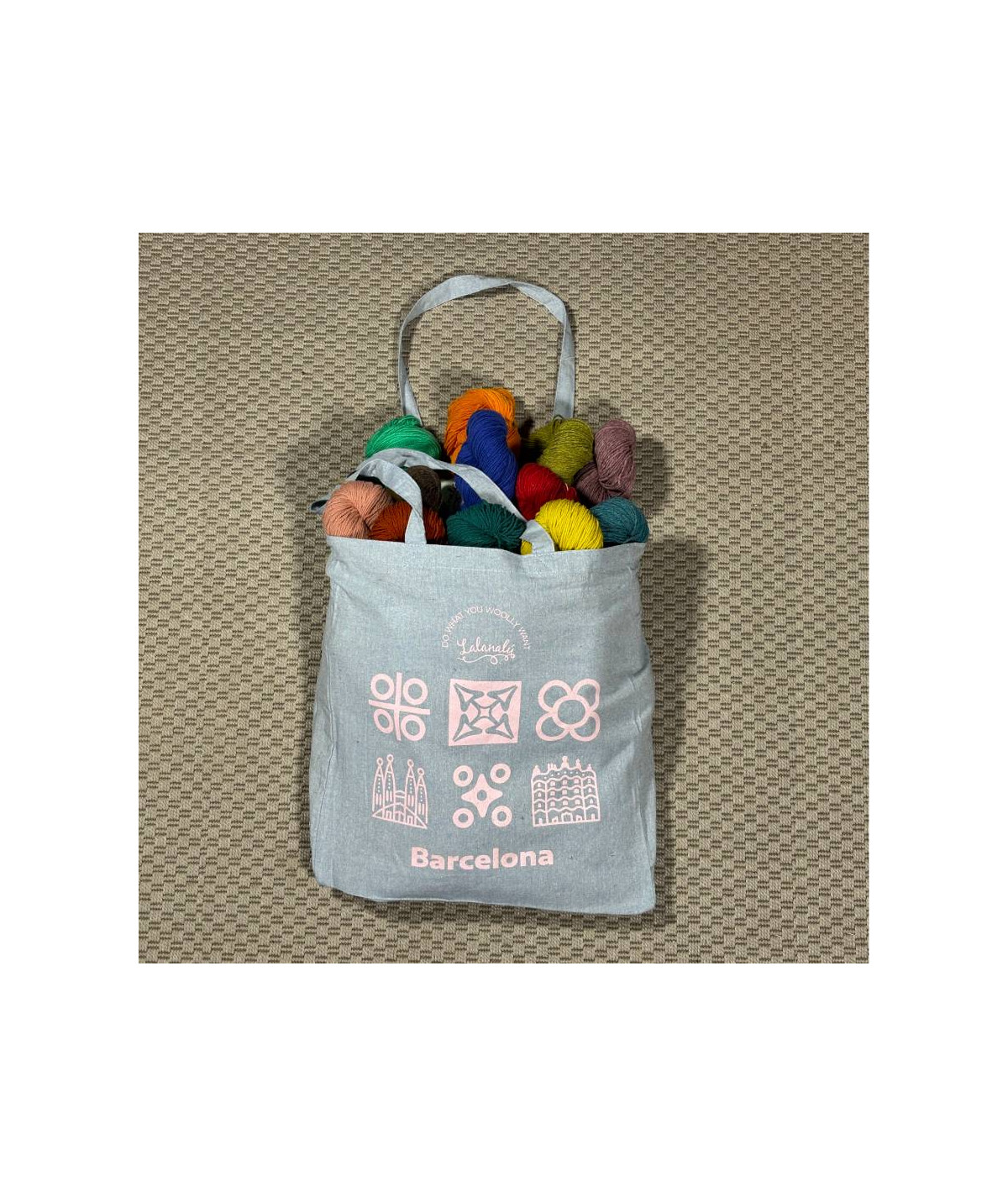 La tote bag Barcelona tiene capacidad de hasta 8 kg. Puedes llevar tu ovillos y grandes proyectos, como jerséis y chales, dónde te dé la lana. También puedes usarla en tu día a día o regalarla como souvenir y mostrar al mundo tu amor por Barcelona.