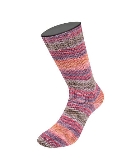 Cotone Vegano Arancia de Lana Grossa es un hilo de algodón, con un print efecto rayas, para tejer calcetines y ¡lo que te dé la lana!