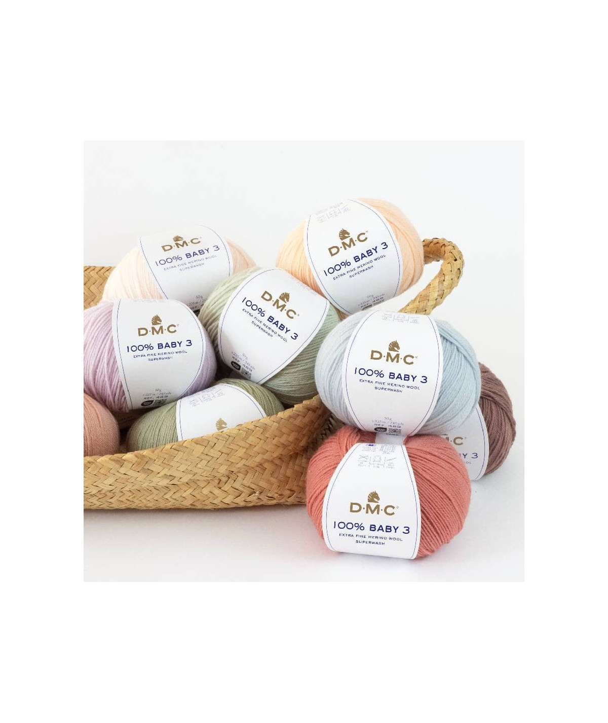DMC 100% Baby 3 de DMC es una lana merina superwash con certificado Oeko Tex. Es tan suave, ligera y delicada como resistente.