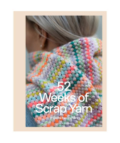 52 Weeks of Scrap Yarn: Projects for Crafters es una inspiradora colección que contiene 52 patrones de retales de hilo, desde proyectos pequeños a grandes, desde accesorios y decoración para el hogar hasta jerséis y chaquetas de punto. Algunos diseños están hechos enteramente con retales, mientras que otros los utilizan en pequeños detalles como llamativo elemento de diseño. Además de punto, también hay algunas piezas de ganchillo.