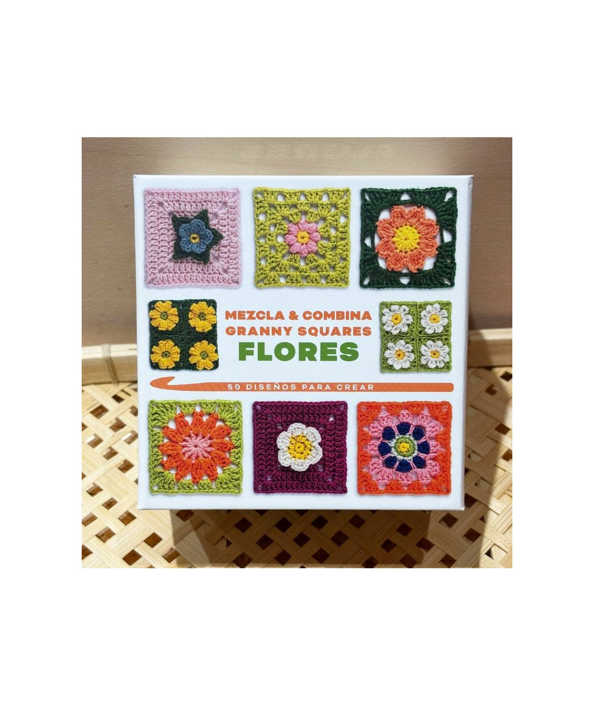 Cada ficha lleva una foto de la labor y su diagrama de puntos correspondiente en el dorso. Las fichas se acompañan de un manual para aprender a interpretar los diagramas, combinar los colores y todas las instrucciones que necesitas para unir las piezas y crear tu propio ramo de grannies.