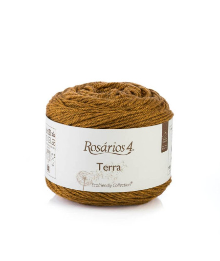 Terra, de la colección Ecofriendly de Rosários4, es lana 100% grosor aran / worsted en colores tierra. Una gama amplia ideal para tus proyectos de otoño e invierno.